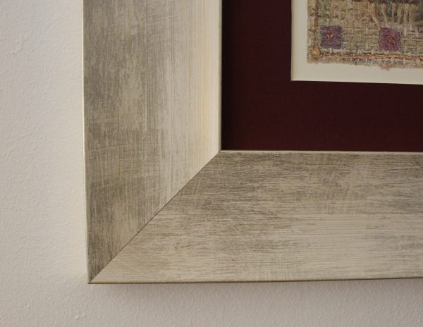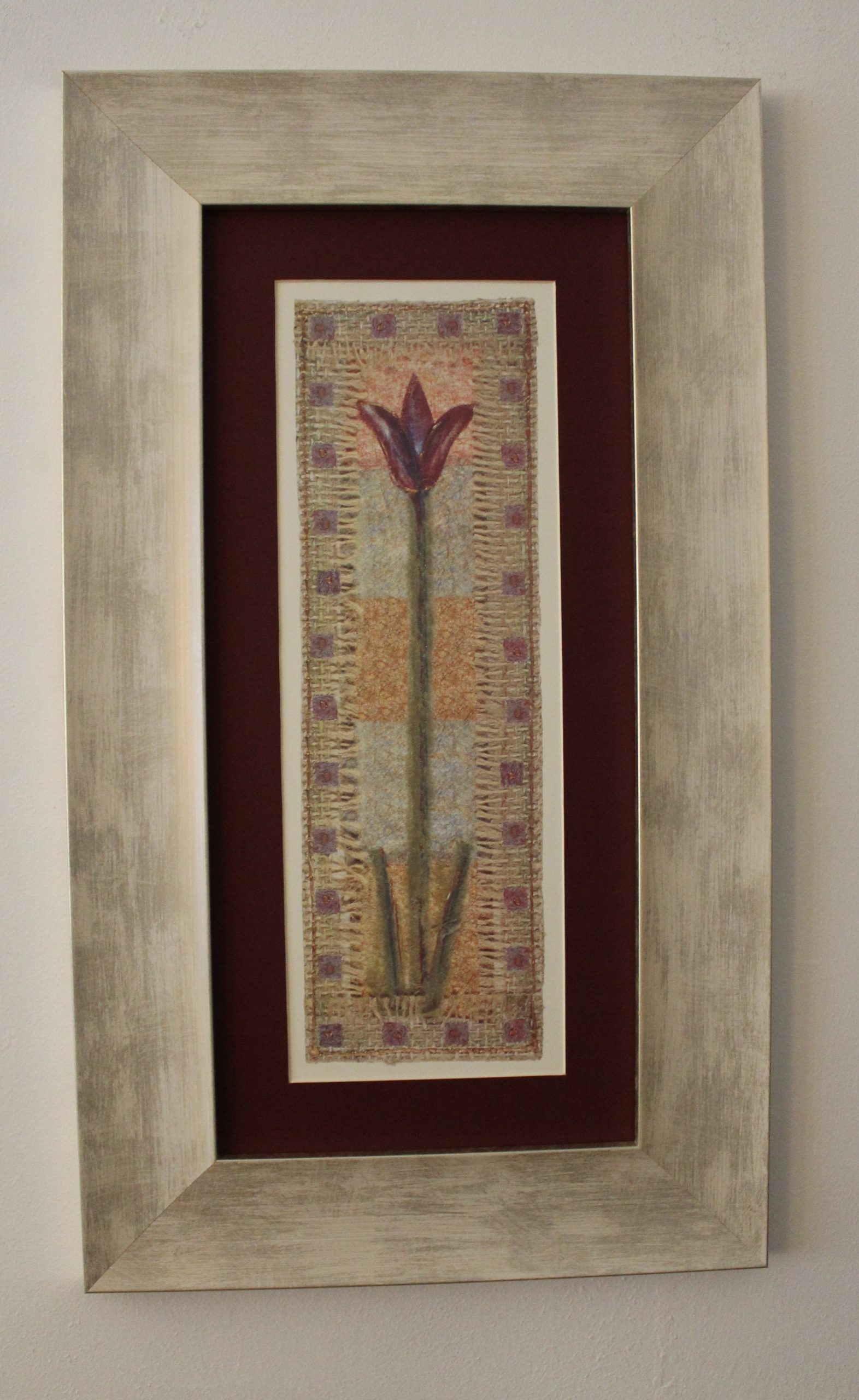 Marco alargado con moldura de madera auténtica en forma de bandeja, color blanco rascado en plata. Contiene un passepartout de color verde y una lámina de flor. Cristal brillante y trasera resistente sellada para evitar la entrada de polvo y humedad.