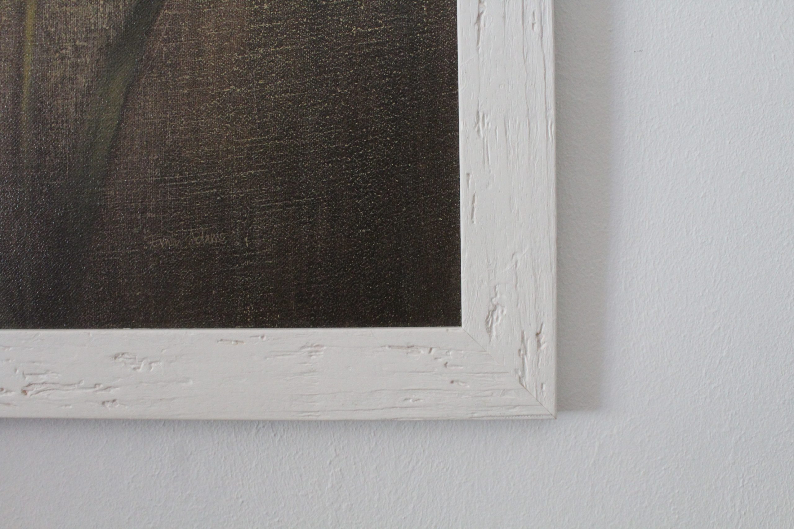 Marco de madera auténtica con acabado blanco rústico. La lámina floral ha recibido un tratamiento para su conservación que le da un acabado en relieve como si estuviera pintada. El cuadro no lleva cristal, si que lleva trasera resistente y sellada para evitar entrada de polvo y humedades.